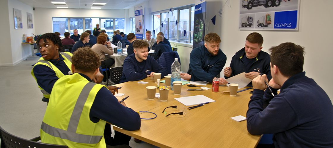 After this very active hour, the group settled in for a Q&A panel that would enable them to gain a deeper understanding and appreciation of the experiences of previous apprentices who have since gone on to build successful careers at Dennis Eagle. The panel was made up of Tony Bates, Manufacturing Manager, Teresa Jones, Sales Support Engineer, and Chris Benton, Head of Purchasing and Supply Chain, and explored the full extent of each career journey, from lessons learned to valuable advice for the future.