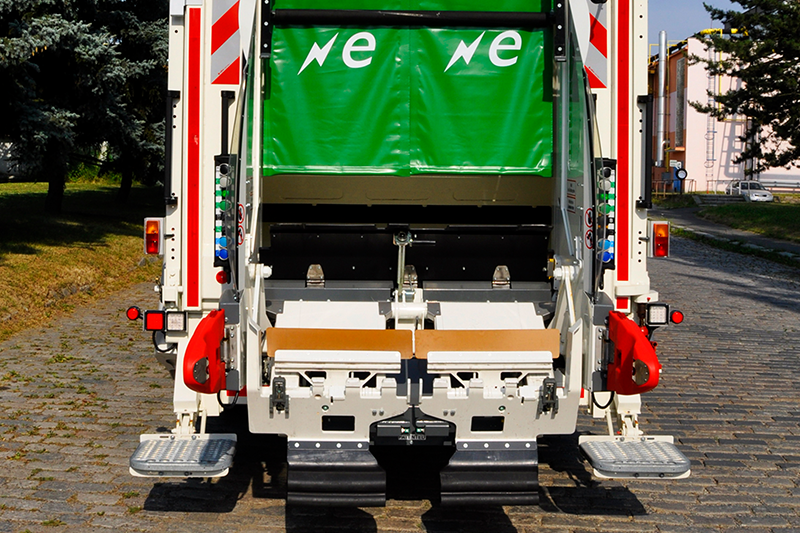 The powered refuse plate, made from high strength aluminium, makes loading of bulky items simple and efficient and is interlocked with the packer to ensure safety.