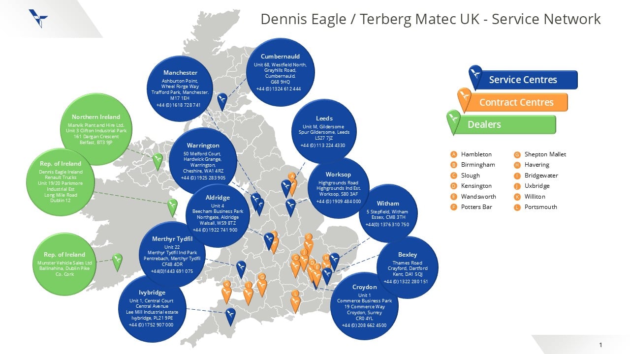 Our dedicated engineers are trained to ensure safe, quality repairs and maintenance when you need it. A nationwide team of mobile Field Service Engineers is ready to respond rapidly to minimise downtime and keep your fleet on the road. By coordinating all our service operations, Dennis Eagle ensures the highest level of customer support across the whole of the UK and Ireland.
